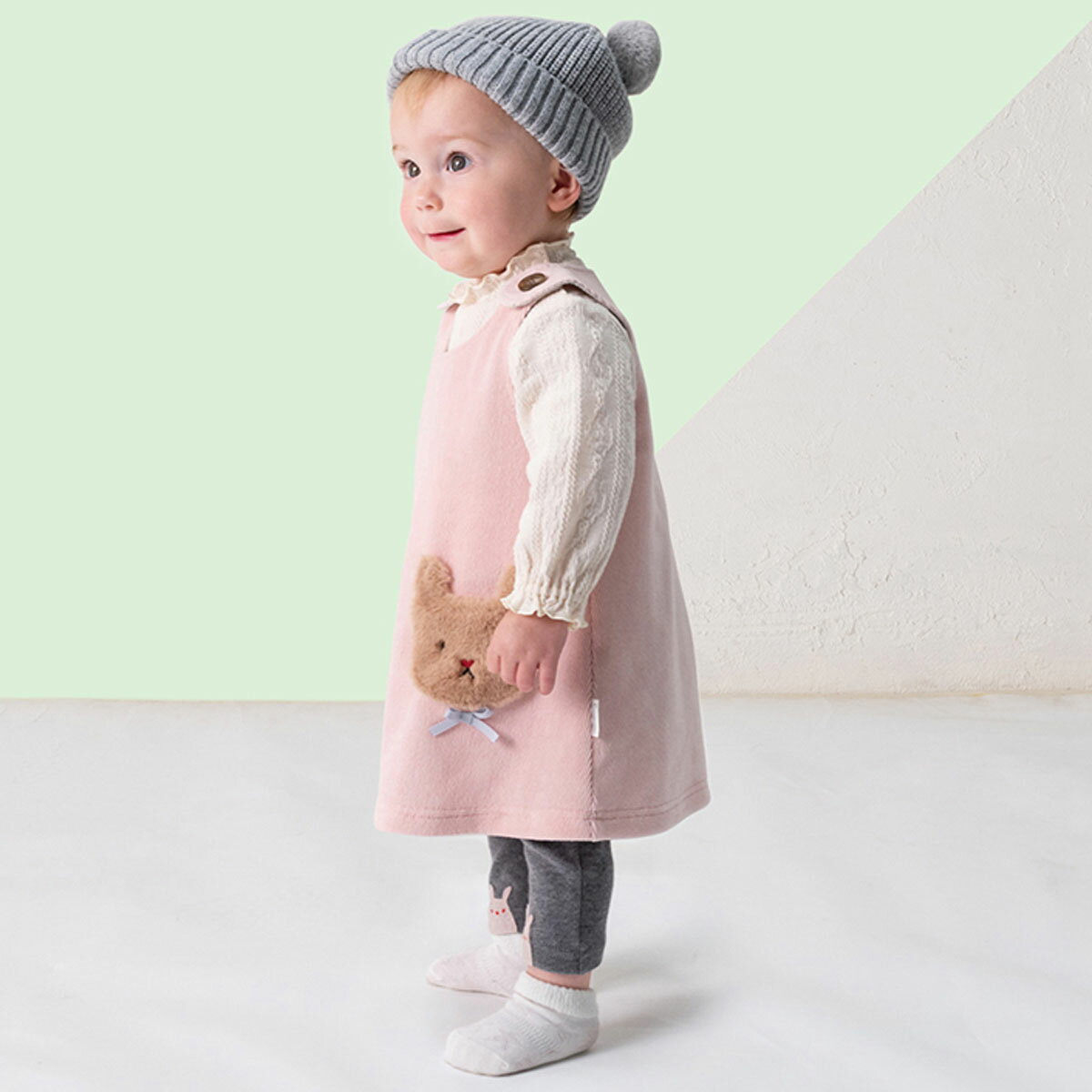 【25%OFF】《コンビミニ》 やわらかニットコールジャンスカ | 女の子 70cm 80cm 90cm 子供 冬 ベビー服 冬服 ベビー おしゃれ 秋冬 子供服 かわいい ジャンスカ ジャンパースカート スカート ジャンバースカート 新生児 ワンピース 出産祝い 誕生日 1歳【アウトレット】