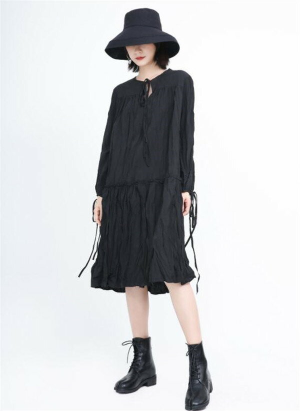 ワンピ 女性 ワンピース シャツワンピース しわしわ レディース ロング 春 夏 春夏 きれいめ 長袖 ミディアム 結婚式 夏 袖あり 大きい ミモレ丈 ゆったり 20代 30代 40代 お呼ばれ 他と被らない 体型カバー 袖付き 長袖 二次会 ブラック リボン付き