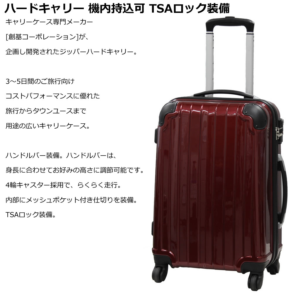 MOA 機内持ち込み最大容量サイズファスナーキャリー SX-7125-SS 18インチ