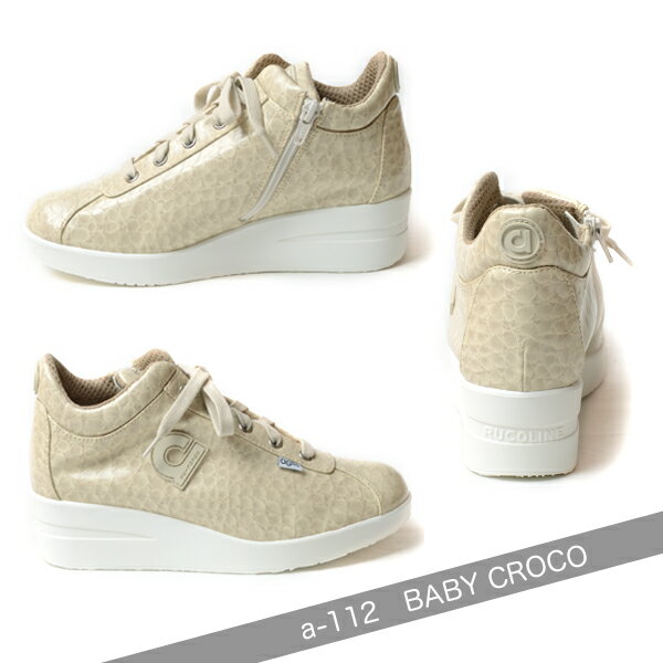 ルコライン スニーカー アージレ バイ ルコライン サイドファスナー付 Baby Croco ベビークロコ アイボリー色 /ホワイトソール agile-112IVWH ファスナー付 レディース シューズ ルコライン靴 agile by RUCO LINE 数量限定品 サイズ交換不可